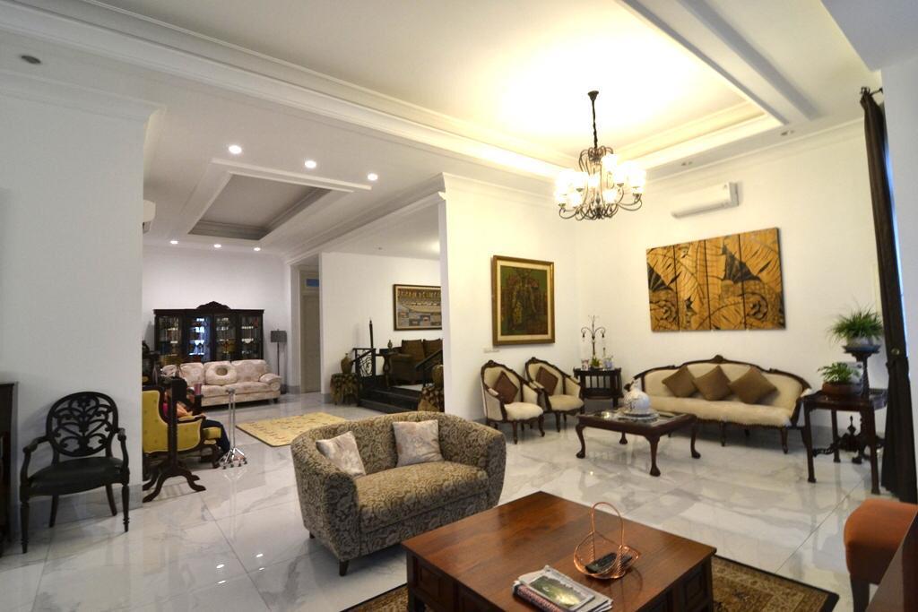 Luas tanah 763 di sertifikat, actual 785.bangunan 800 ; lantai bawah 2 kt ( master)2 kamar mandi, 1 powder room, ruang kel cukup luas , pantry, dapur kotor, 1 kamar pembantu + kamar mandi ,ruang gym, teras, pool 4x 10,lantai atas ; 4 kt ( 2 kamar mandi dalam ) + 1 kamar mandi luar, ruang duduk,1 gudang, 2 km pembantu dan kamar mandi . Ruang cuci dan jemur, listrik 26000, carport 11 mobil , SHM, bangunan baru selesai Maret 2019, semua kamar sdh ada tempat tidur lengkap lemari pakaian, meja kerja. Ac Daikin, CCTV, sanitairs Grohe. Harga 67.5 M nego Code : JO